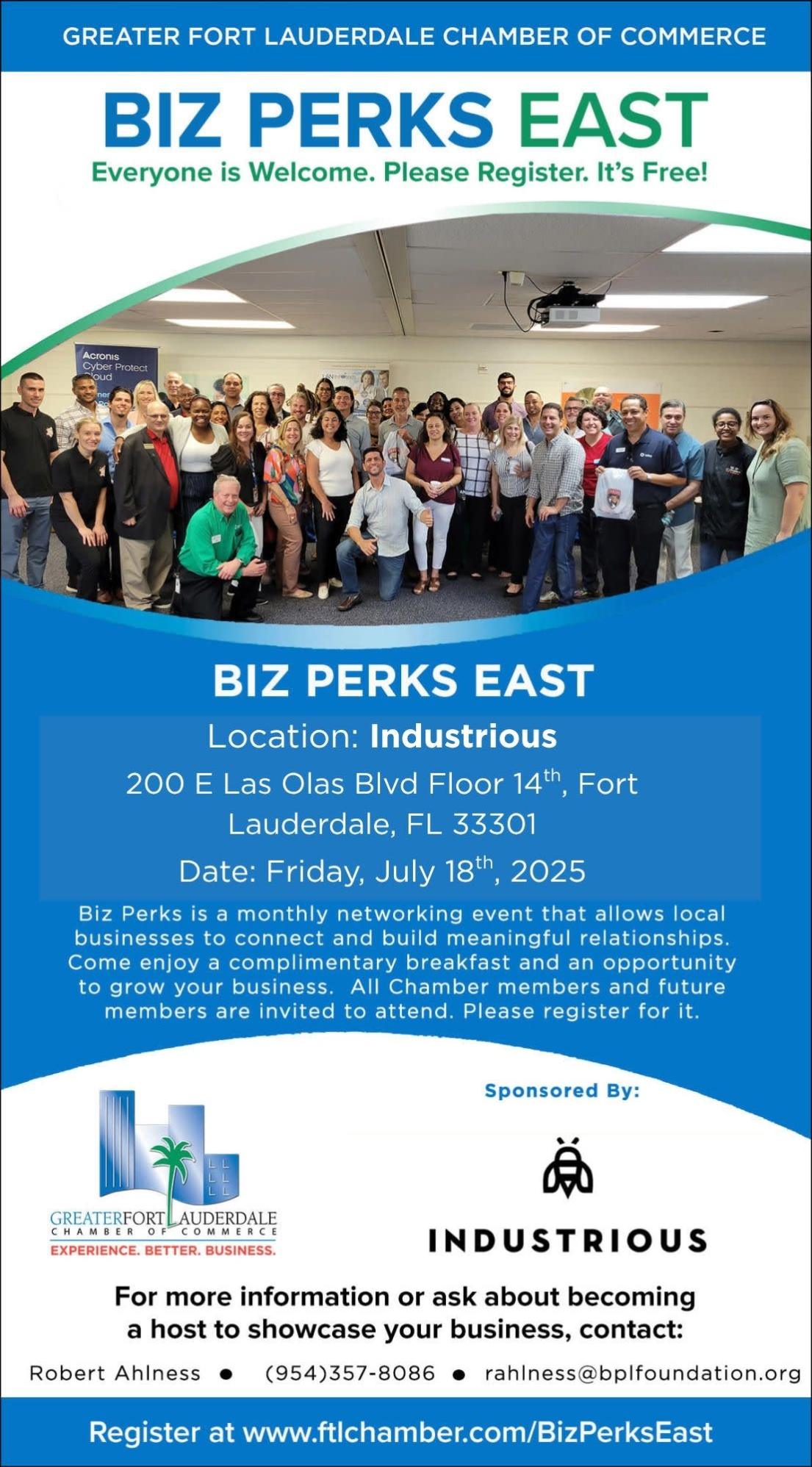 Biz Perks is a monthly networking event that allows local businesses to connect and build meaningful relationships. Come enjoy a complimentary breakfast and an opportunity to grow your business. All Chamber members and future members are invited to attend. Registration Required.