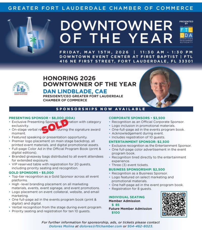 Celebrate nearly two decades of visionary leadership as Dan Lindblade, CAE, President & CEO of the Greater Fort Lauderdale Chamber of Commerce, is honored as the 2026 Downtowner of the Year, presented by the Fort Lauderdale Downtown Development Authority.