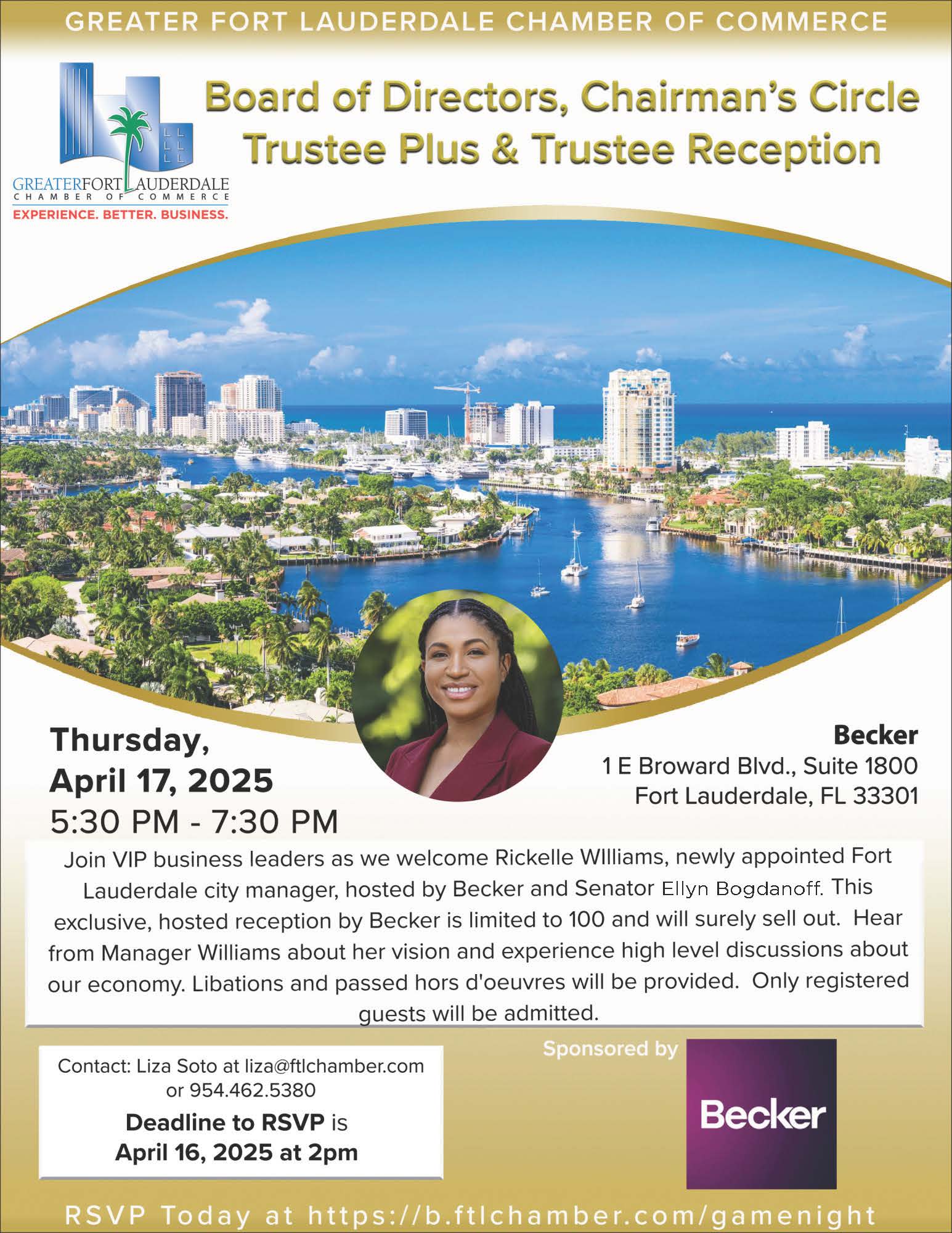 Join VIP Chamber business leaders and special guests as we welcome Rickelle WIlliams, newly appointed Fort Lauderdale city manager,