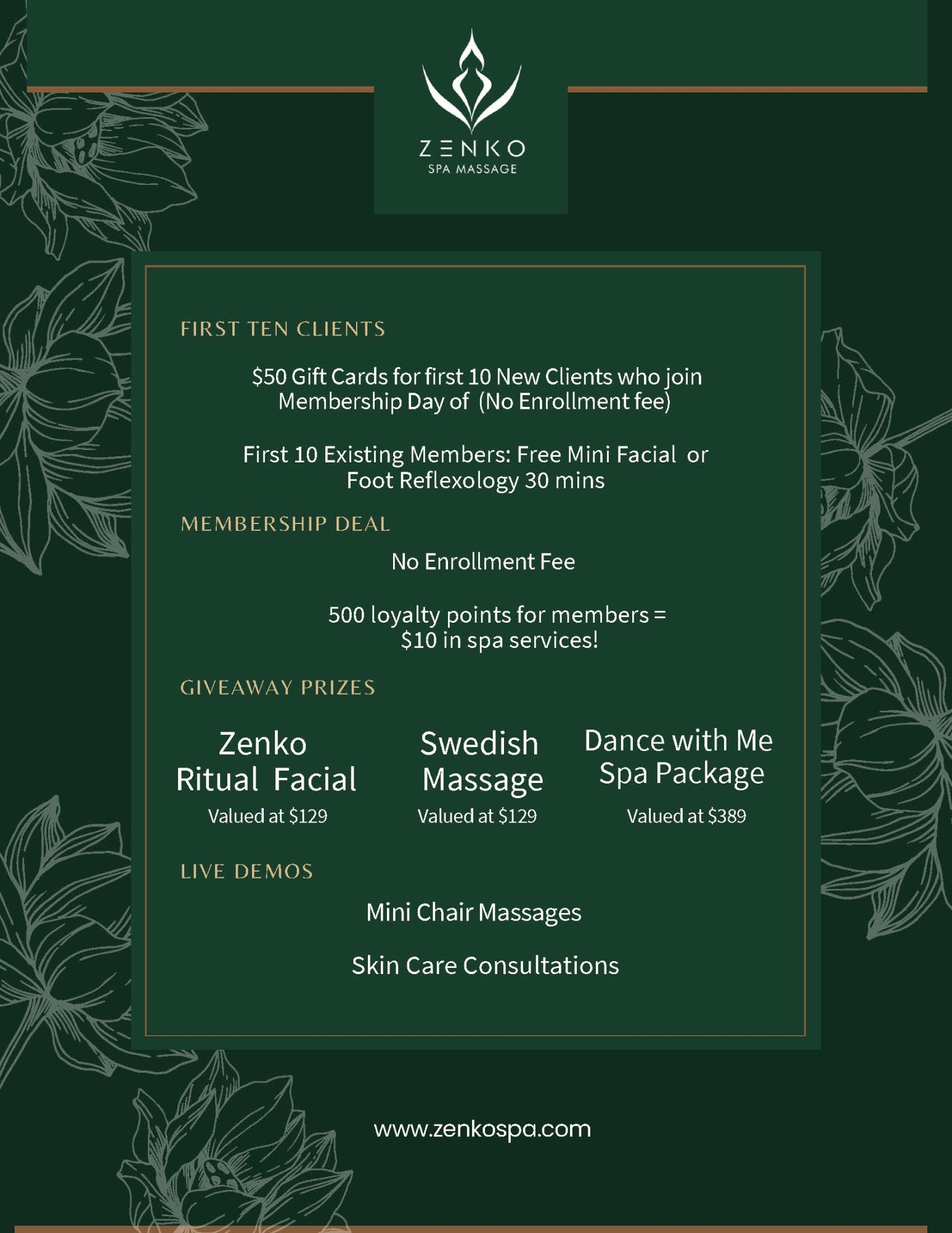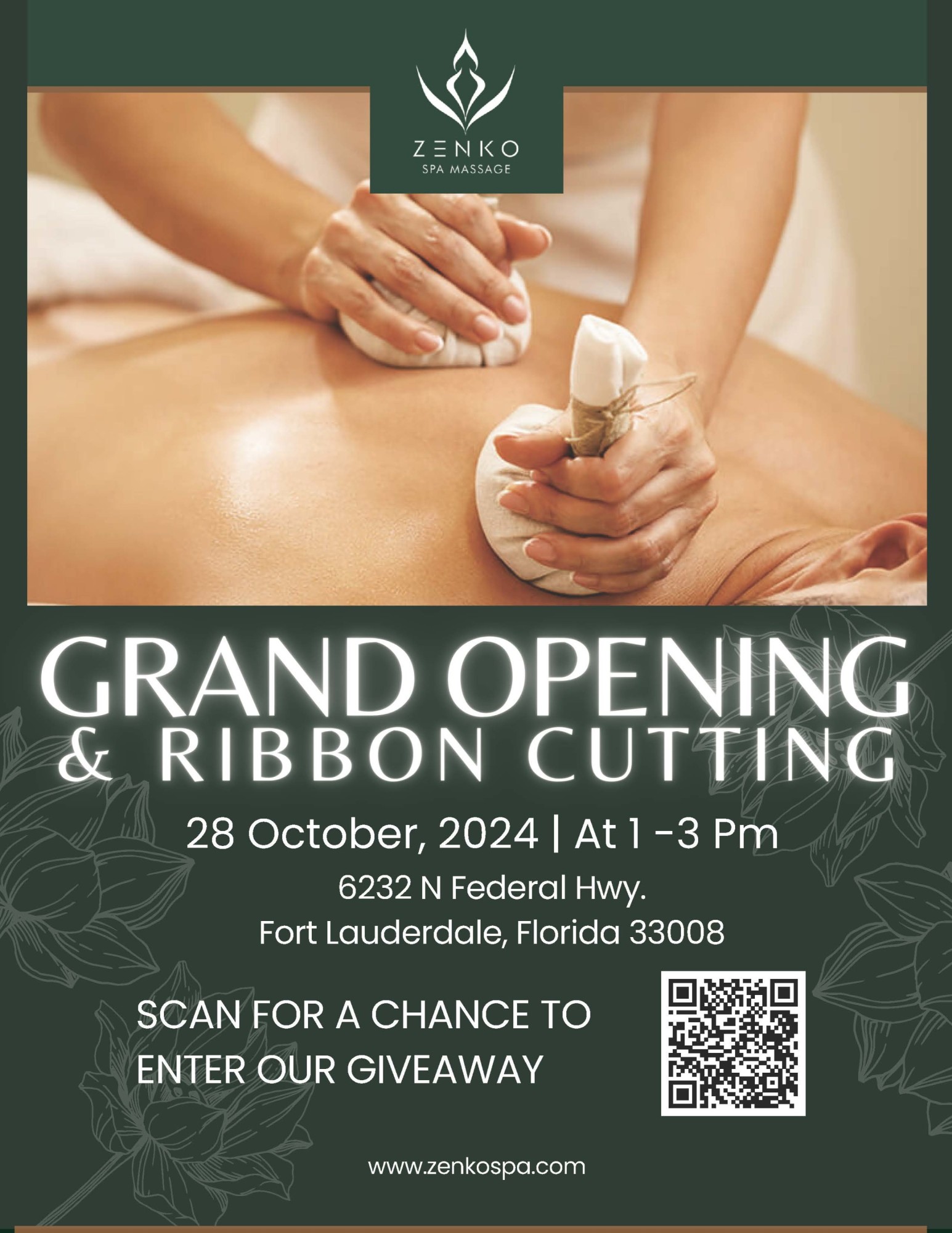 Join us for the highly anticipated grand opening of Zenko Spa & Massage, where relaxation meets luxury! We’re celebrating our new beginnings with a ribbon-cutting ceremony, exclusive raffles, special promotions, and refreshments. This is the perfect opportunity to tour our beautiful new space, meet our expert therapists, and enjoy a day of pampering and excitement!